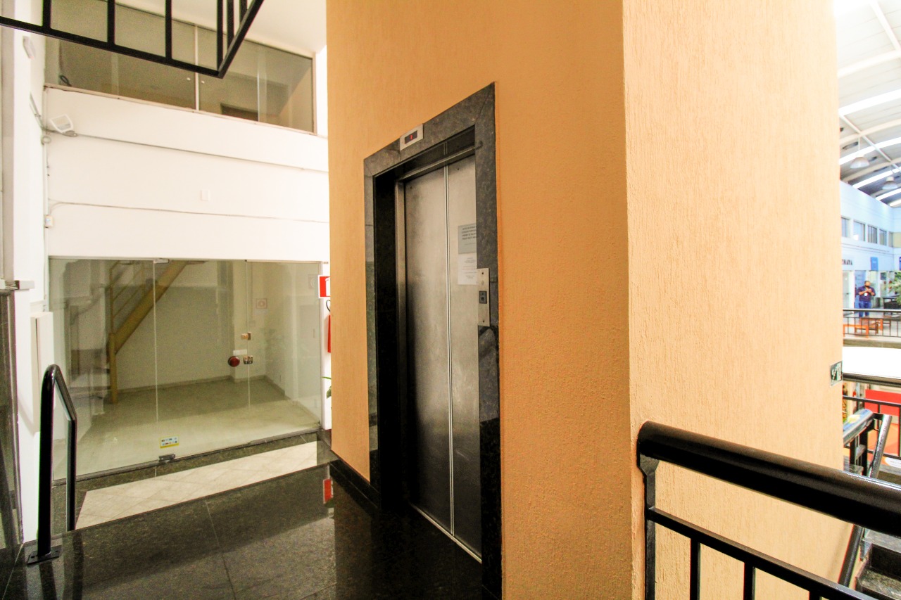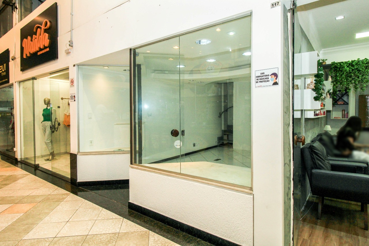 Loja com 43,95m²no piso principal, sendo 1 pavimento com iluminação planejada, vitrine e ar condicionado. 2 pavimento com banho e escritório com armários planejados. Shopping com elevador.